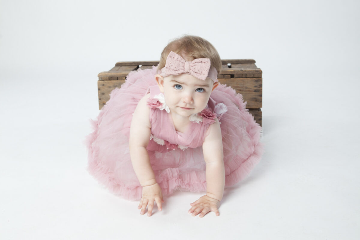 Full fart med skratt och bus i studion när det var 1-årsfotografering med Elise. Vi passade även på att göra en ”Smash the Cake” fotografering.